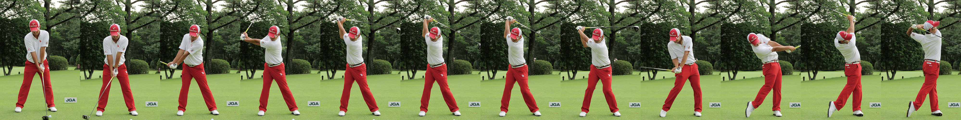 昨年よりも体が大きくなり、スイングにも力強さが加わった。上体のねじり上げもさらに大きくなり、飛距離も伸びた。トップスイングはオーバースイングだが、下半身はしっかり止められているので矯正する必要はない。この力強さに柔らかさが加われば、アイアンの距離感が良くなり、もうワンランク上のゴルフを展開できるようになるだろう。| クラブ | ヘッド | シャフト | スペック |