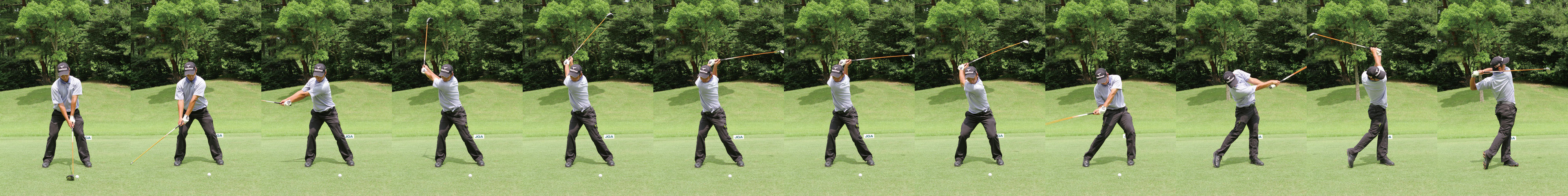 ワイドスタンス、ノーコックのバックスイングで上半身をマックスに回し、上半身と下半身の捻れ差を最大にしてパワーを作り出す。ダウンスイングではそのパワーを解放させ、フィニッシュまで一気に振り抜く。ただ、ダウンスイングで下半身が必要以上に動きすぎているのが気になる。このオーバーワークを抑えたなら、ショット精度は高まるはずだ。| クラブ | ヘッド | シャフト | スペック |