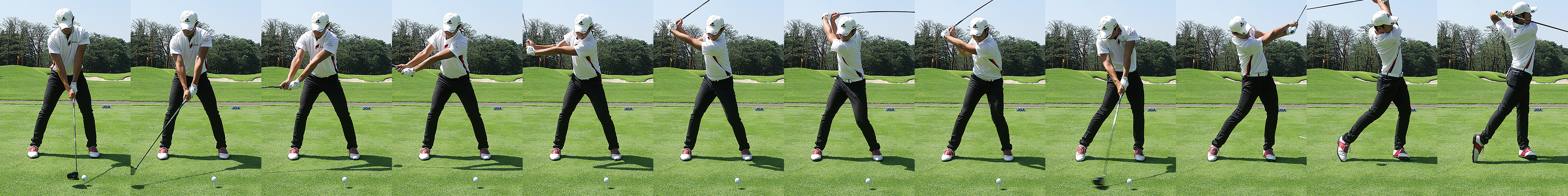 肩幅よりも広いスタンス幅は、若さあっての体の柔らかさを物語っている。バックスイングでアークを大きくしたい意識も理解できる。だが、右腕の畳み方が遅いようだ。トップスイングの切り返しからインパクトまで右肩が下がらず、右腰がレベルにターンし、左サイドの壁がしっかり出来上がっているのは素晴らしい。惜しまれるのはフォローサイドでフェースローテンションが大きく、クラブが寝てしまっている点だ。今後はインパクト以降のスイングを矯正してみてはいかがだろうか。| クラブ | ヘッド | シャフト | スペック |