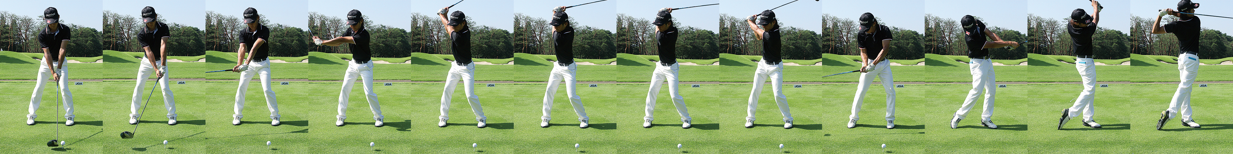 アドレスにどっしりとした安定感が不足している。理想のアドレスには前後、左右から多少押されても動かない安定感が求められる。テークバックの際、ヘッドから上げるアーリーコックは良いが、グリップエンドが目標方向へ向き、グリップが浮き上がっているのは感心できない。ヘッドの重さを感じながらテークバックに入ったなら、この癖は修正できるはずだ。プレインパクトのフォームは素晴らしく、この長所を生かすためにもテークバックを矯正して欲しい。| クラブ | ヘッド | シャフト | スペック |