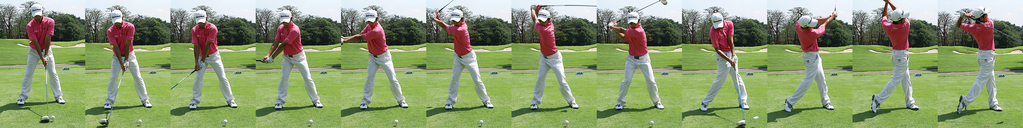 テークバックと同時に体重を右サイドに移動して、大きなトップスイングを作っている。ダウンスイングでは右肘を上手く絞り、タメを作っている。インパクトでも上半身は正面を向き、左サイドの壁はしっかり出来ている。ただ、インパクト以降ボールをもう少し押せていないのが惜しまれる。体力をつけることでこの課題はクリアできるはずだ。| クラブ | ヘッド | シャフト | スペック |